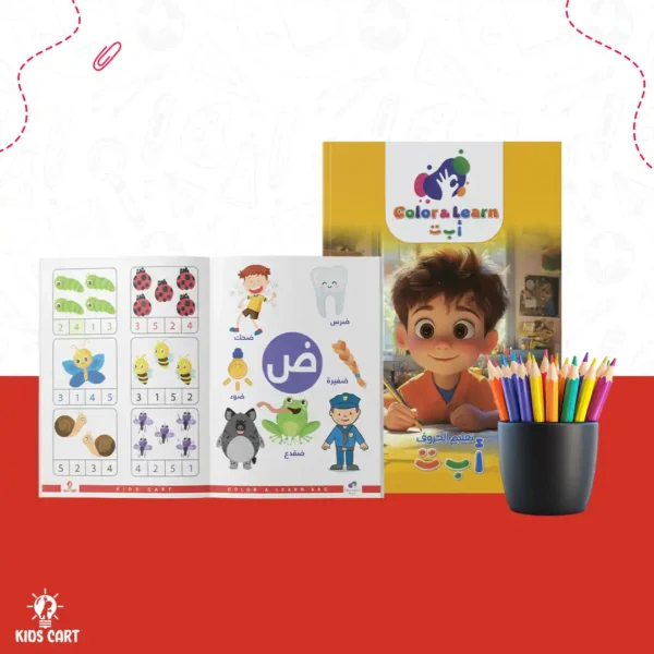 بتسهّل عليه أول خطوة: يتعرّف على شكل الحرف، يلونّه، وبعدين يكتبه بإيده من غير ضغط. وكل ما يكرر… خطّه يتحسن وثقته تكبر.